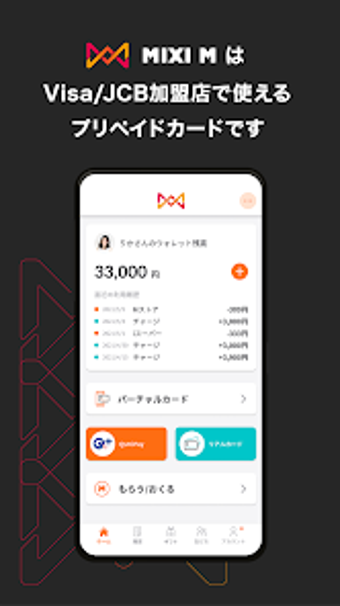 MIXI M adalah metode pembayaran yang memungkinkan Anda melakukan pembayaran di toko-toko yang terafiliasi atau secara online, menggunakan ponsel Anda. Ini adalah kartu prabayar yang dapat dengan mudah diterbitkan di aplikasi. Anda dapat membayar untuk layanan menggunakan saldo ponsel Anda atau dengan menggunakan informasi kartu fisik.